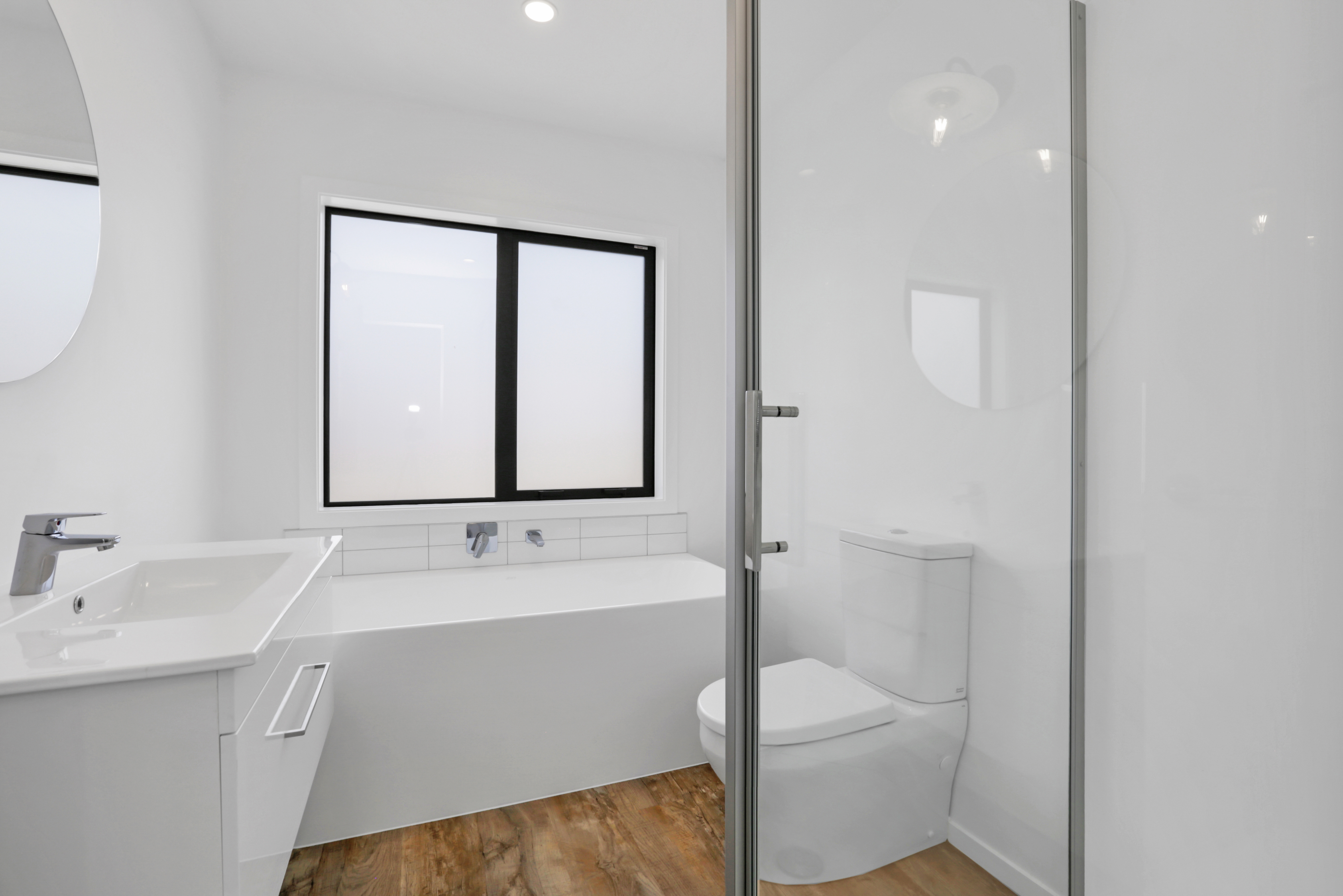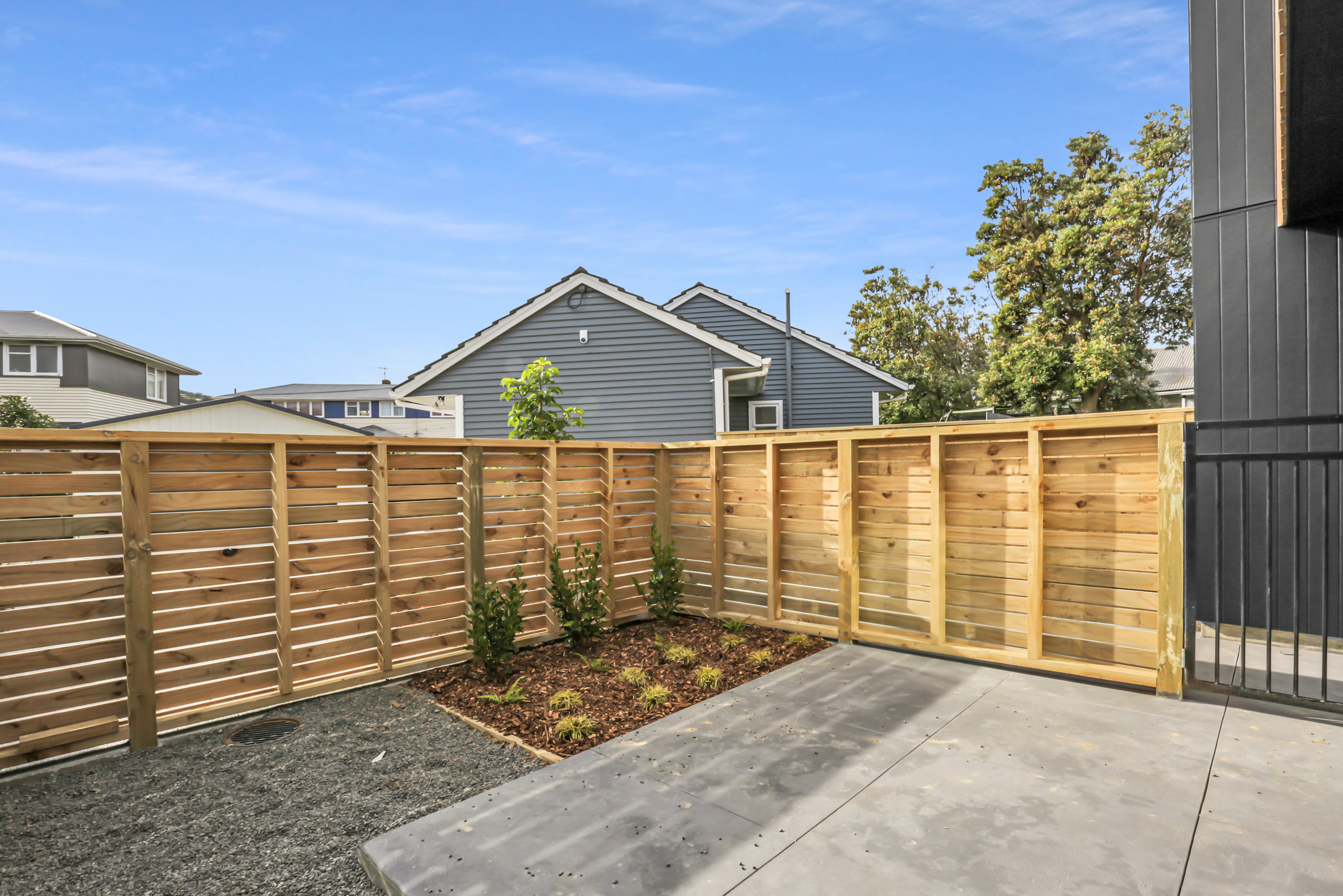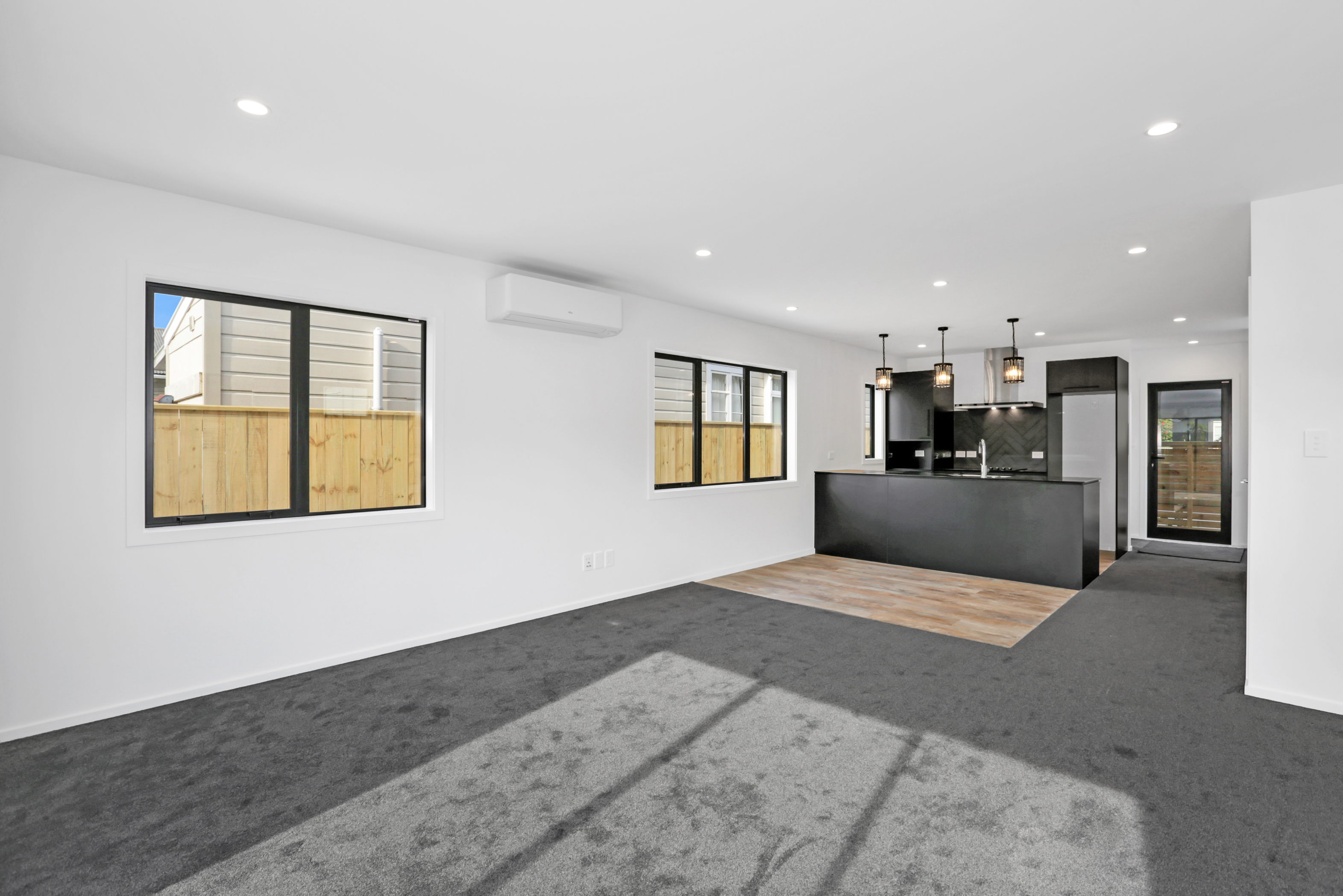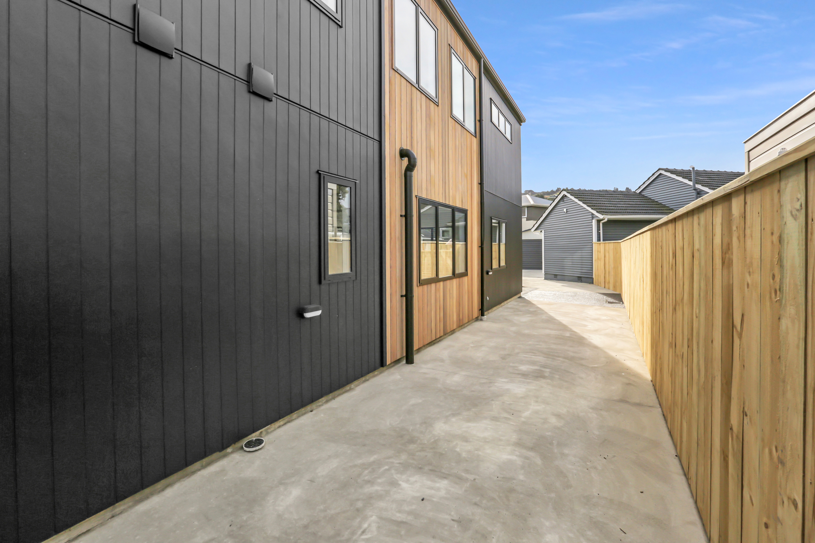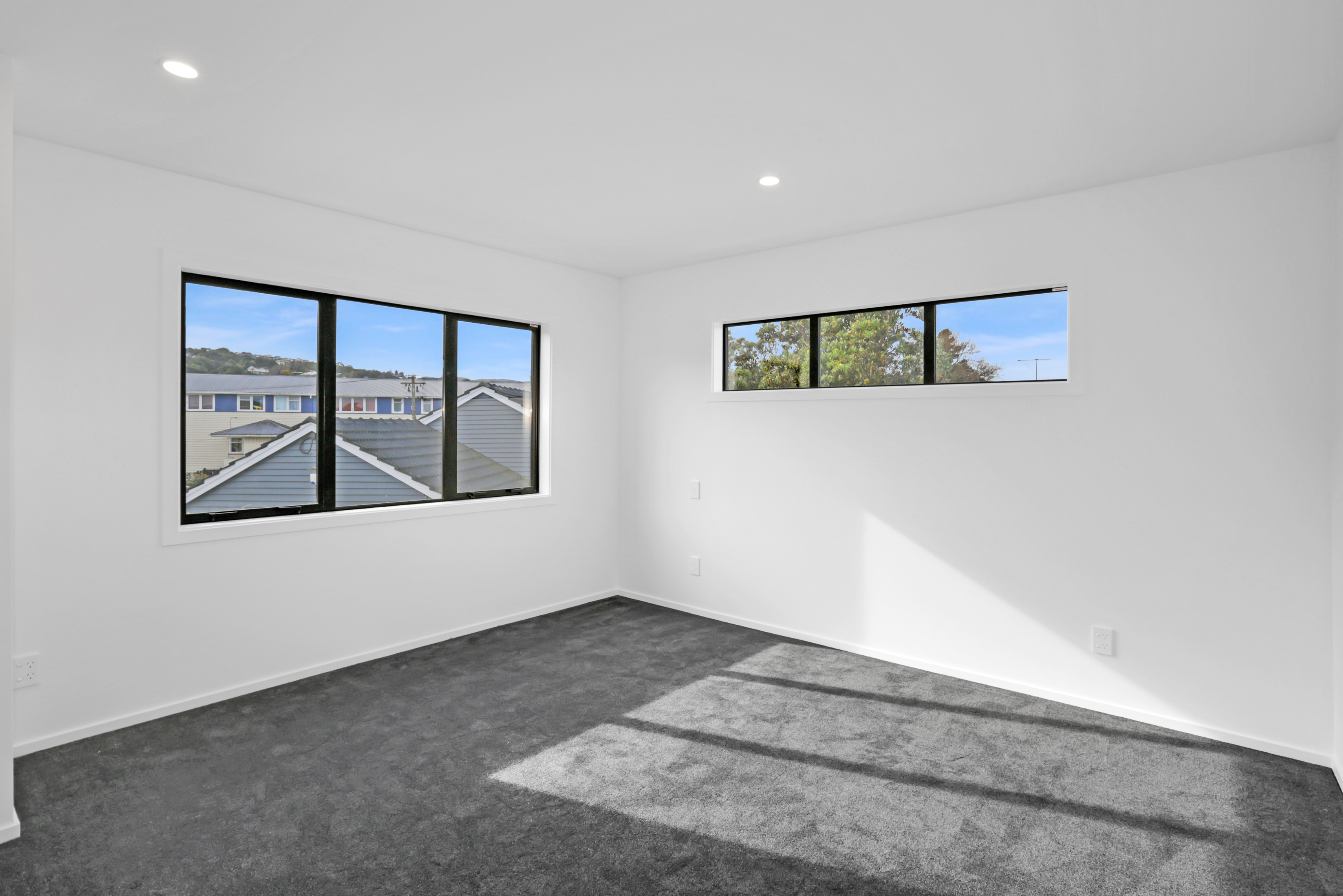 Centered in the heart of Lower Hutt, the new build is well positioned within walking distance of all major amenities. Step into the ground floor and enjoy open-plan living and all-day sun. The kitchen, which is dressed in black, is connected to the living area – a proud place from which to entertain indoors, if the outdoor living area is affected by the weather. The two-storey design makes efficient use of space – you’ll find the laundry discreetly tucked away under the stairs and stacked sliders lead to the main outdoor area. Design ingenuity in this compact home carries on upstairs, where you’ll find two large bedrooms, plus a study that could accommodate an overnight guest. A well-appointed bathroom serves this area, while a guest bathroom serves the downstairs. A sharp contemporary look is achieved on the exterior, thanks to the contrasting use of cedar on black Stria.