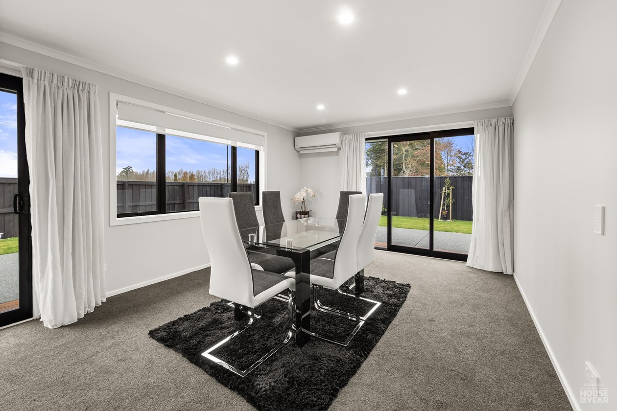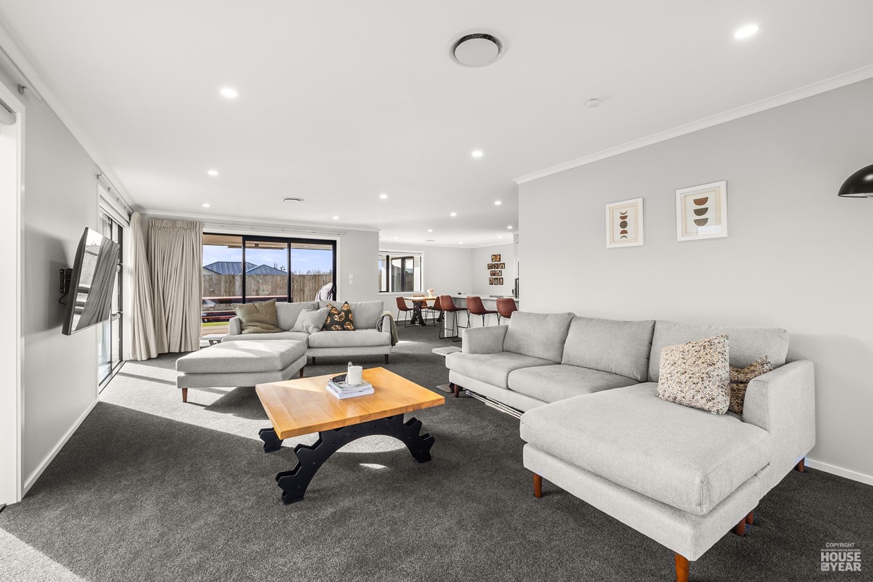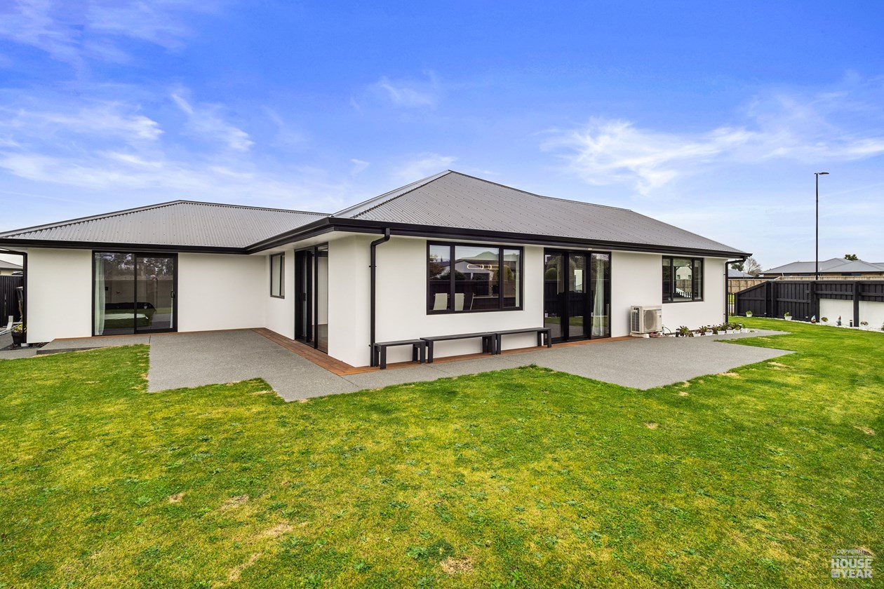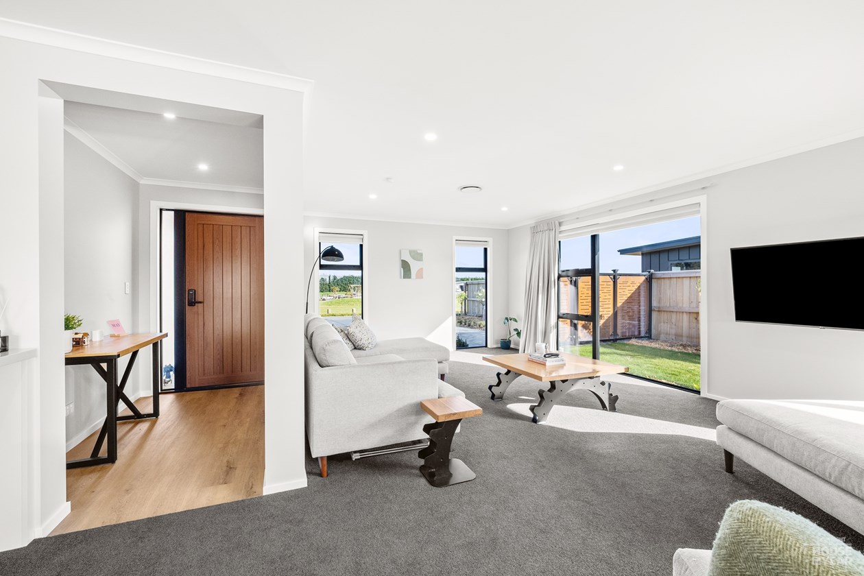 You’d be hard pressed to find a home better suited to laidback living on the shades-of-green plains below the Southern Alps. The landscape is stunning, but so is the 254sqm pavilion style home that inhabits it. A trio of gables clad with vertical weatherboard, brick and coloured steel is your welcoming committee. Head inside and the three-bedroom house lives up to its exterior promise. The modern kitchen has a walk-in pantry, and the lounge, off to the side, also has a pitched ceiling that extends into an alfresco area with a barbecue, lights and heaters. In the second pavilion are the three bedrooms, the main one with an ensuite with large marble-look tiles, a walk-in wardrobe, and direct access through sliding doors to the deck and hot tub. Another bathroom and double garage complete the wing.