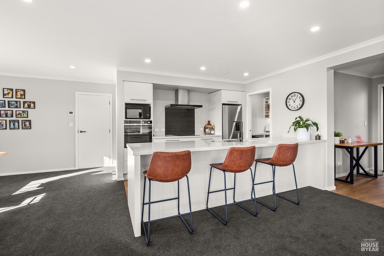 Well planned and well appointed, this Wigram Skies home is designed for laidback, modern living. With a healthy 183sqm, there’s plenty of room for the family. Two living spaces provide options, allowing everyone to come together or enjoy individual pursuits. The large kitchen is the centre of the home. Finishing touches include a tasteful tiled splashback and a stylish black sink and faucet duo in the central bench. The walk-in pantry boasts plenty of storage, plus extra bench space. The main living area converges around a large deck, ideal for morning coffee or an after-work wine. Overlooking a reserve, the master bedroom is a dream for the owners. A walk-in robe keeps clothes and clutter out of sight. The ensuite completes these well equipped sleeping quarters. A second bathroom serves family life, as does the double garage. And it’s all just a stone’s throw from amenities.