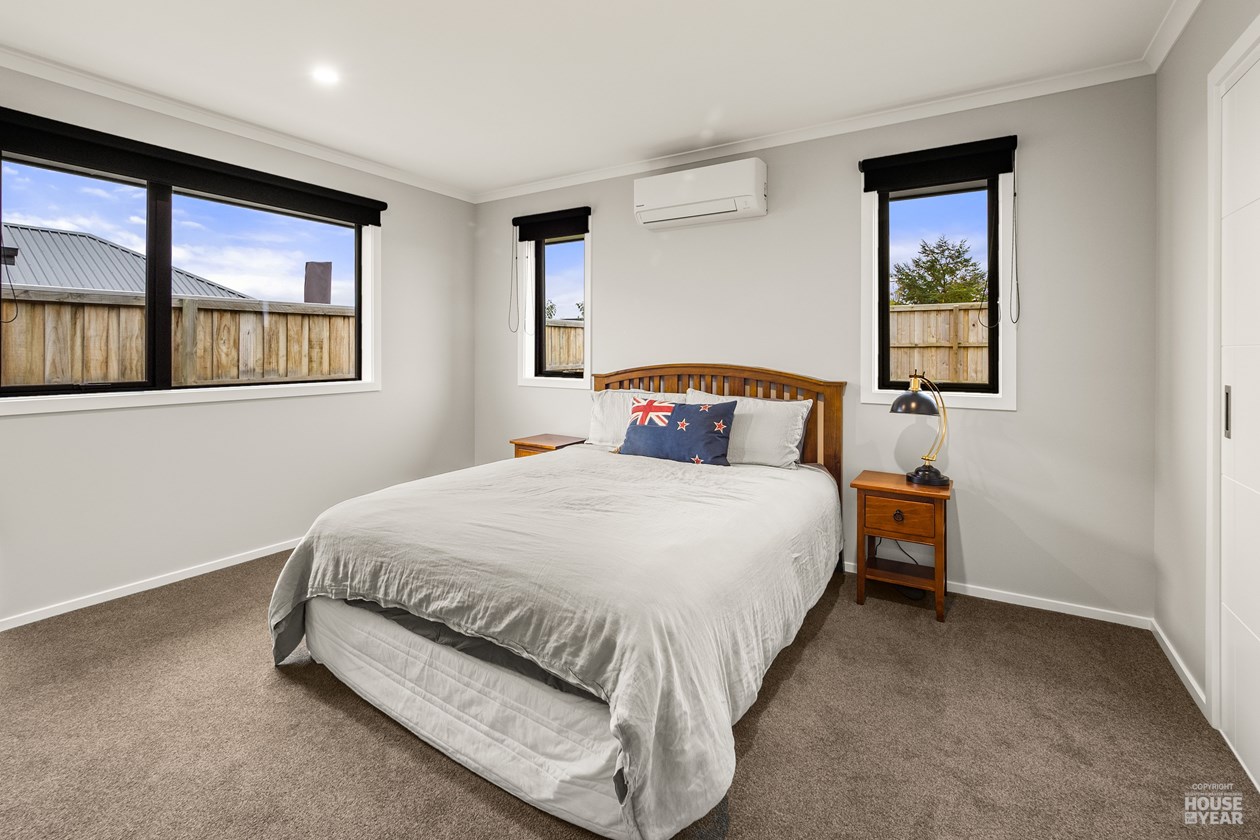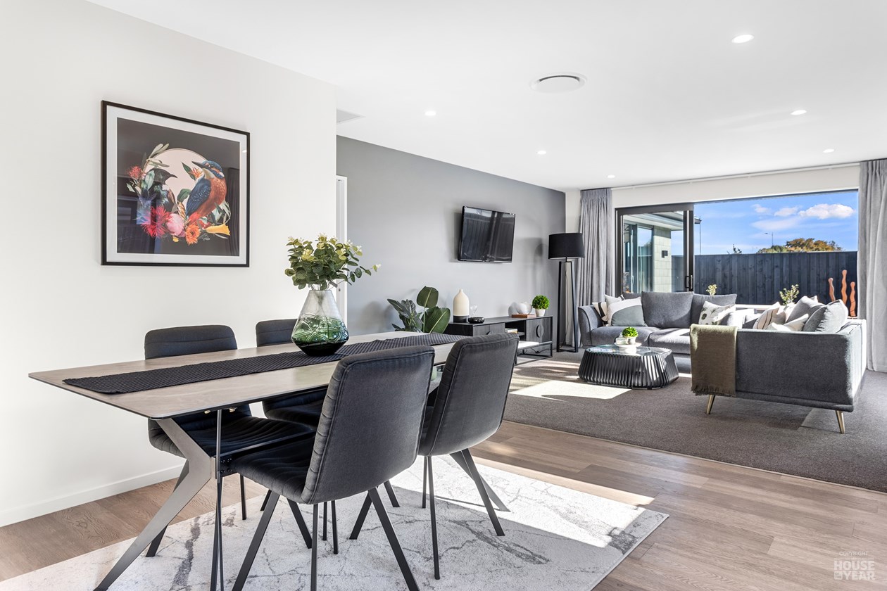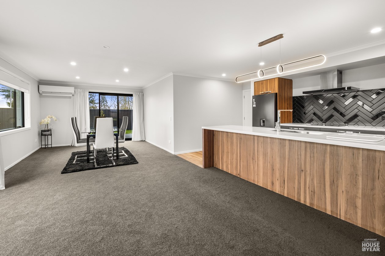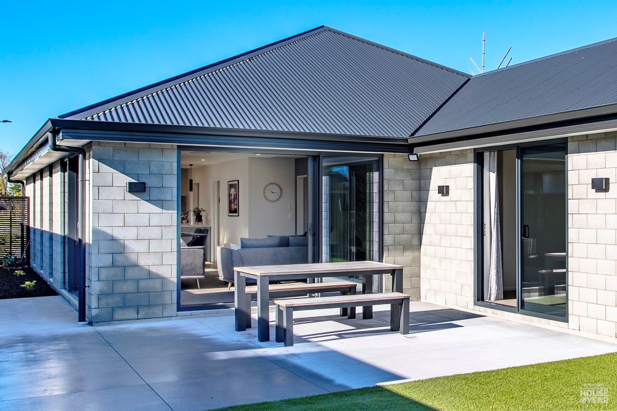 All-day sun, warmth, comfort and energy efficiency. That’s some of the modern-day must-haves checked off, but with this 185sqm north-facing Ashburton house, the list of pluses is much longer. Street appeal is strong: a striking gable end, fuss-free yet attractive landscaping, dark long-run coloured steel roofing and wall cladding of plaster and horizontal weatherboards add up to one inviting property. Interior features also catch the eye. This striking space fans out to an open dining-sitting area and also a living room. These are bathed in sunlight and open to patios. The clever design ensures connectivity in the communal spaces, but also privacy in the three bedrooms. You’ll find another plus in this sleeping quarters part of the home – the main bedroom has a dressing room and ensuite. The remaining bedrooms are served by a family bathroom and separate toilet. A double garage with a laundry, ample storage and modern finishes guarantee this home perfectly balances style with practicality.