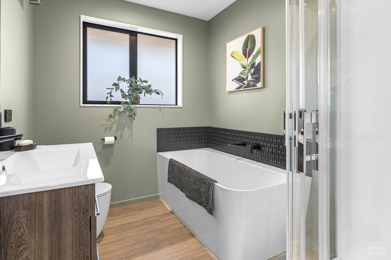 On the green fringes of Ashburton you’ll find a home that’s a perfect blend of contemporary design, convenience and extras tailored to the owners’ needs. One such client amenity is a carpeted triple garage that has oodles of storage for toys, vehicles, projects and more. Expansive glazing, including sliding doors, allows green views to flood into the open-plan dining and living spaces. Step outdoors and onto a covered area that takes up an entire corner of the floorplan. The living is easy when it spills from the family and dining spaces out to the decking. The main-bedroom suite has a couple of notable additions: a walk-in wardrobe and a stylish ensuite. The home also has two more well-proportioned bedrooms, a family bathroom, powder room and that must-have for working from home — an office. The harmonious design and sleek finishes extend to the exterior of the house, which is clad in dapper white plaster trimmed with timber-look panels. This is modern living at its finest.